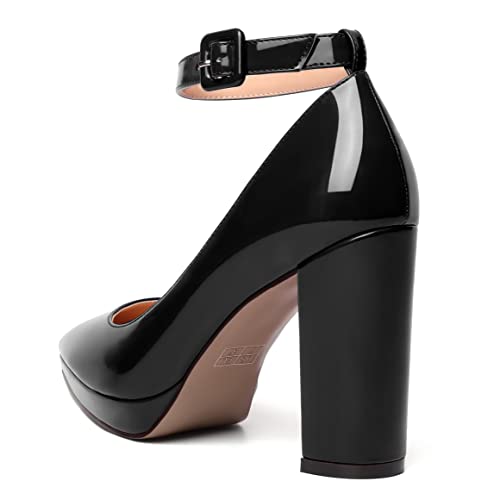 MERRORI Womens Platform Evening Dress Buckle Solid Patent Pointed Toe Ankle Strap Chunky High Heel Pumps Shoes 4 Inch 3