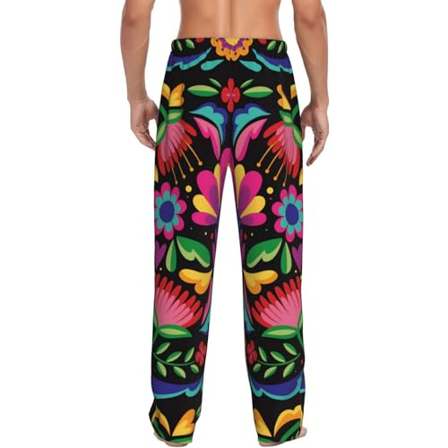 HOT ! Mens Pajama Pants Bottoms With Pockets- Colorful Floral Embroidery Mexican Soft Men Lounge Pants, Comfy Mens Pj Pants