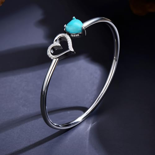HOT ! Genuine Turquoise Heart Bracelet, Sterling Silver Native American Dainty Bangle Adjustable Cuff Jewelry for Women, Fit for 6.5 7 7.5 Inches