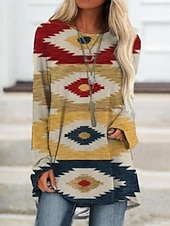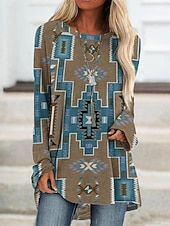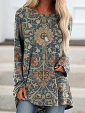 More information about Women's T Shirt Graphic Tribal Vintage Stylish Casual Long Sleeve Crew Neck Long Tops Daily Print Blue Brown Green Khaki Spring Fall