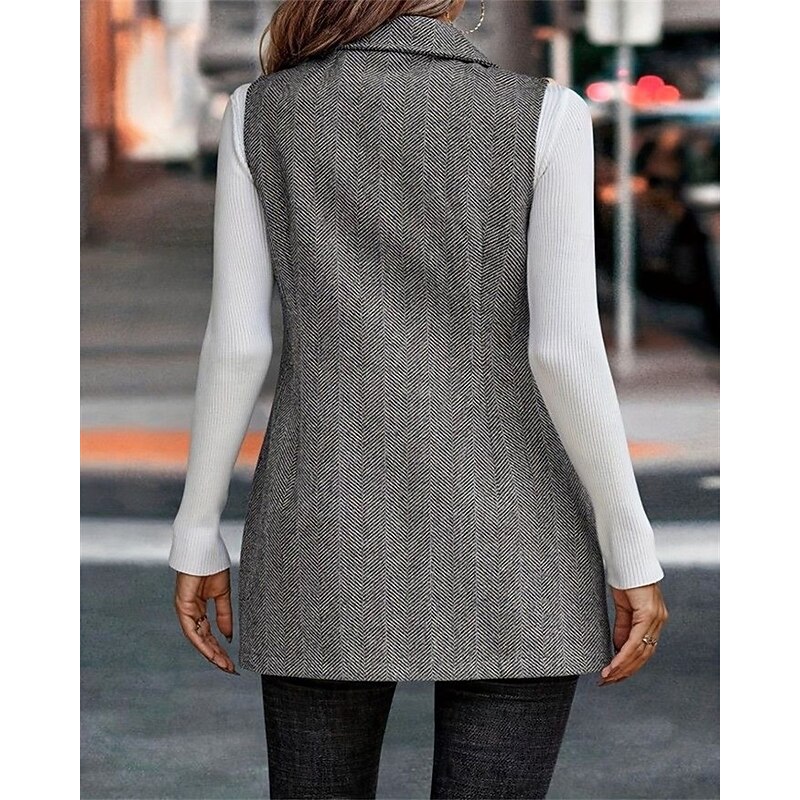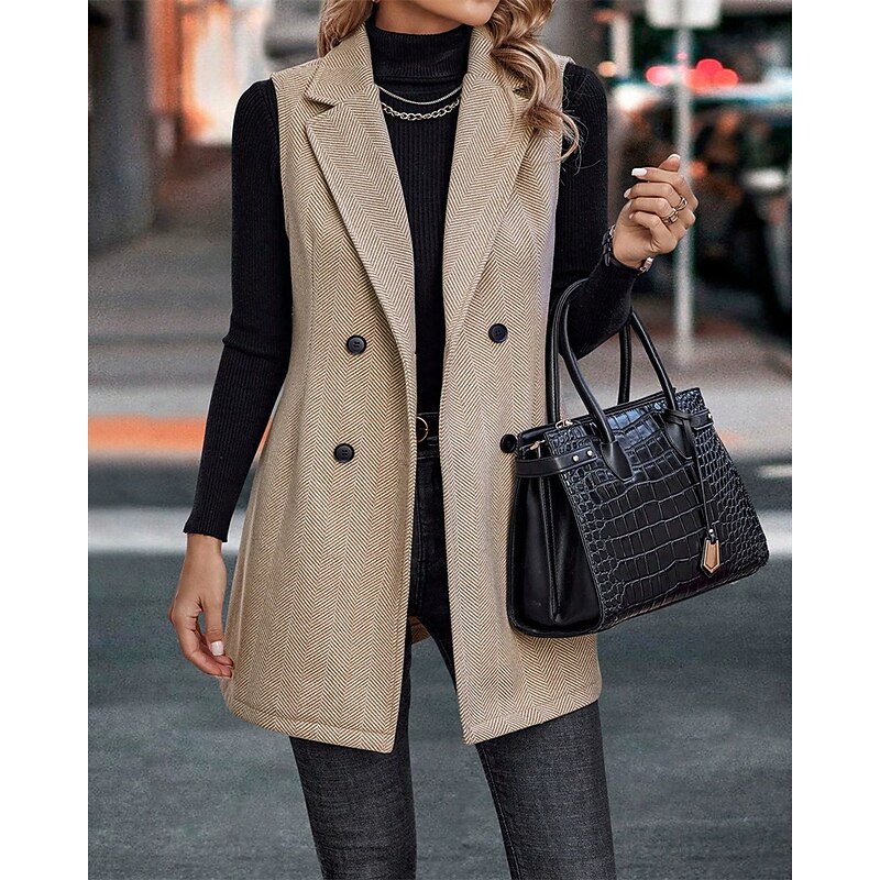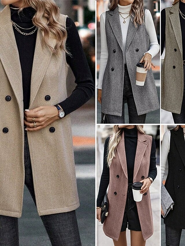 More information about Women's Casual Jacket Warm Comfortable Buttons Fashion Outdoor Plain Going out Weekend Double Breasted Regular Lapel Regular Fit Sleeveless Outerwear Black Pink Camel Fall Winter