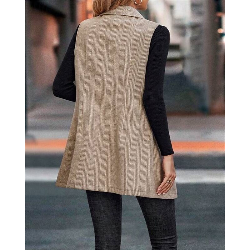 Women's Casual Jacket Warm Comfortable Buttons Fashion Outdoor Plain Going out Weekend Double Breasted Regular Lapel Regular Fit Sleeveless Outerwear Black Pink Camel Fall Winter 2