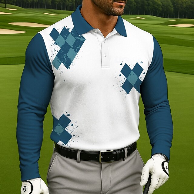 More information about Men's Geometric Golf Polo Sports Polo Shirts Long Sleeve Polo Shirts Collared Shirts Casual Sports 3D Print Spring Fall Black Blue Purple