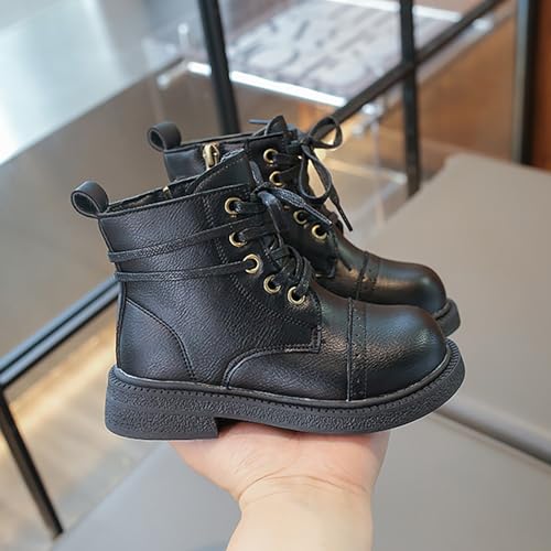 IWIHMIV Girls Ankle Boots Kids Non Slip Lace up Fashion Leather Booties with Zipper Toddler Girls Riding Boots 5