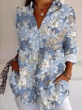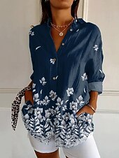 More information about Women's Shirt Button Down Tunic Shirt Collar Long Sleeve Graphic Abstract Daily Stylish Modern Regular Tops Work Daily Holiday s Print Yellow Navy Blue Blue Spring Fall