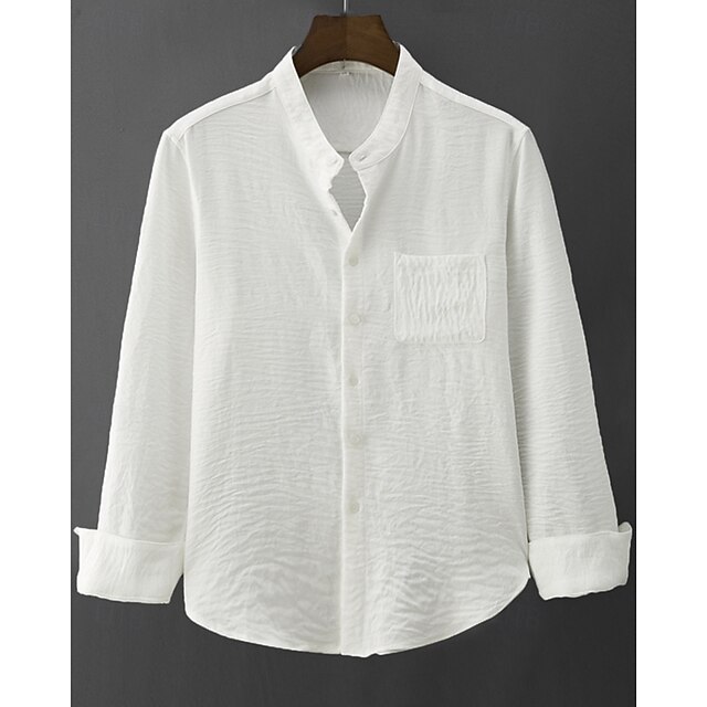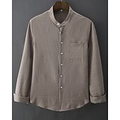 More information about Men's Shirt Summer Shirt Casual Shirt Beach Shirt Button Up Shirt White Gray Long Sleeve Plain Band Collar Vacation Hawaiian Pocket Clothing Apparel Polyester Fashion Casual Comfortable