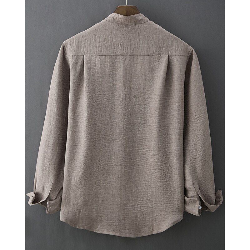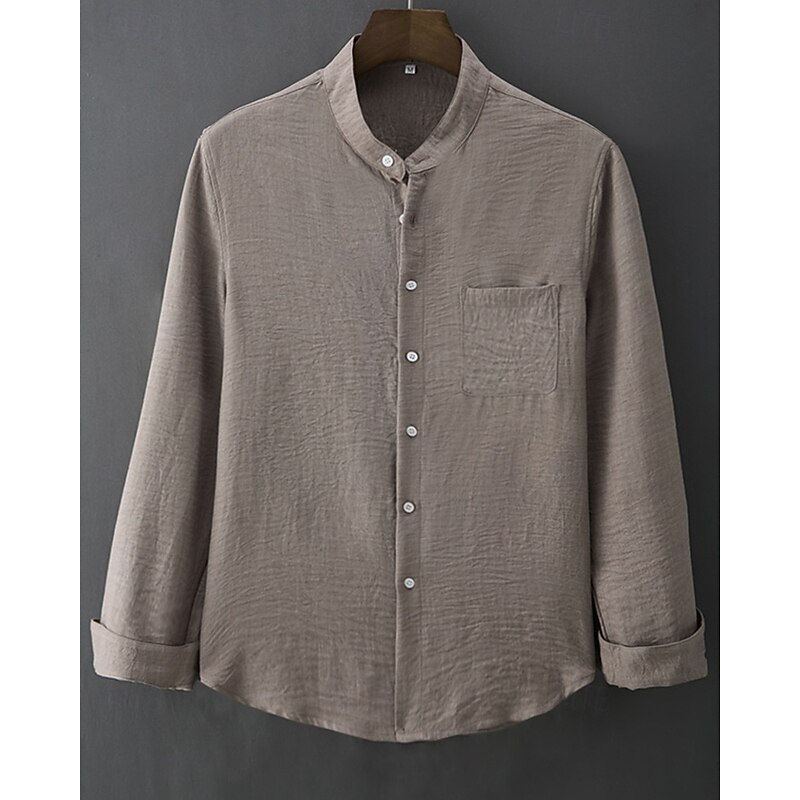 Men's Shirt Summer Shirt Casual Shirt Beach Shirt Button Up Shirt White Gray Long Sleeve Plain Band Collar Vacation Hawaiian Pocket Clothing Apparel Polyester Fashion Casual Comfortable 7