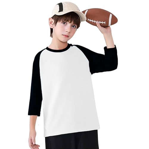 Boys Girls 3/4 Sleeve Shirts Color Block Tops Cotton T-Shirts Basic Tees Fall Casual Tshirts 3-14 Years 6