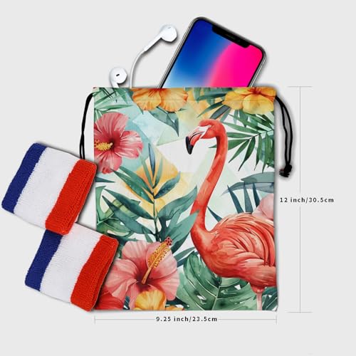 More information about Beautiful Flamingo Gymnastic Grip Bag Tropical Flowers Drawstring Bag for Holiday Gym Beach Dance