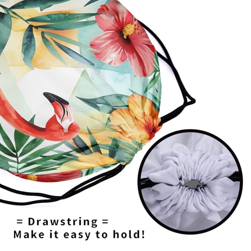 Beautiful Flamingo Gymnastic Grip Bag Tropical Flowers Drawstring Bag for Holiday Gym Beach Dance 6