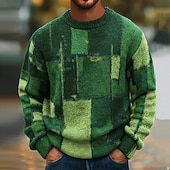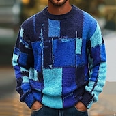 More information about Men's Color Block Abstract Pullover Sweater Jumper Knitwear Crewneck Casual Vacation Home Street 3D Print Knitting Keep Warm Long Sleeve Spring Fall Winter Blue Orange Green