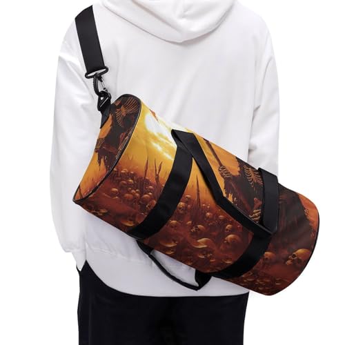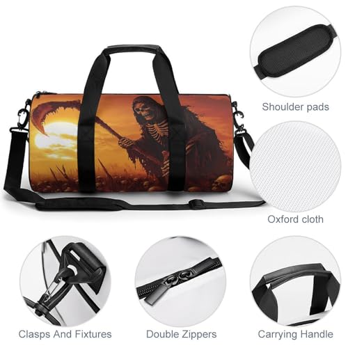 Grim Reaper Skeletons Sunset Unisex Gym Bag Travel Duffel Bags Overnight Sport Tote with Compartment for Weekender Vacation 7
