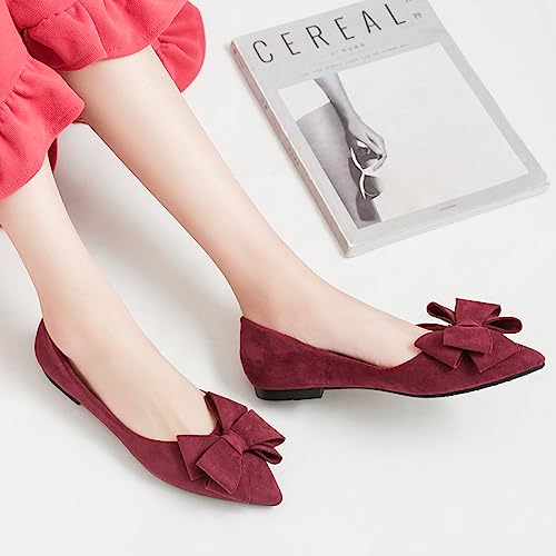 Dear Time Women Casual Comfortable Slip On Ballets Flats Pointy Toe Elegant Wedding Flat Shoes Wine Red-7490 US 4.5 6