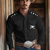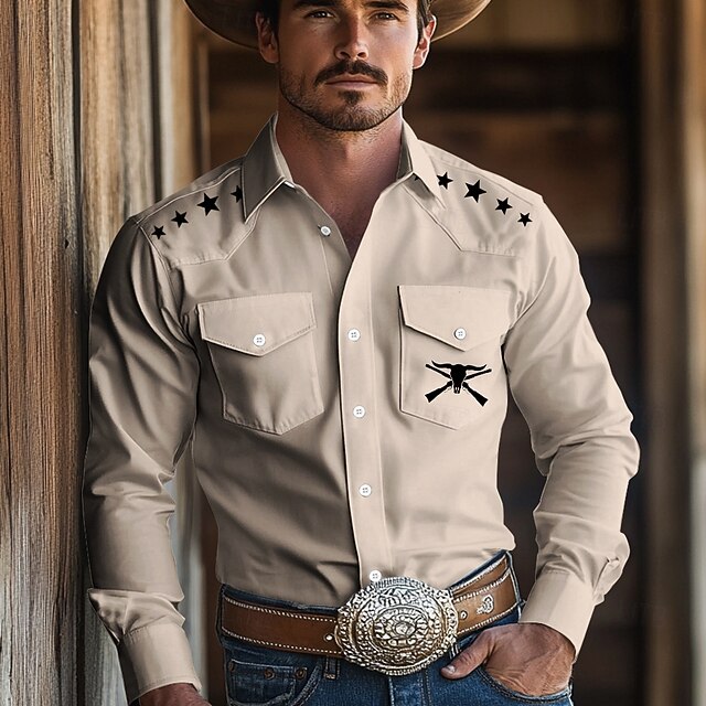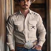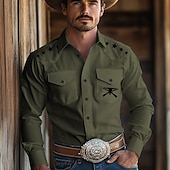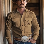 More information about Men's Cow Print Western Shirt Button Up Shirt Cowboy Shirt Long Sleeve Western Vintage Retro Outdoor Casual Spring Fall Turndown Collared Shirts Front Two Pockets Light Khaki Black Army Green Brown