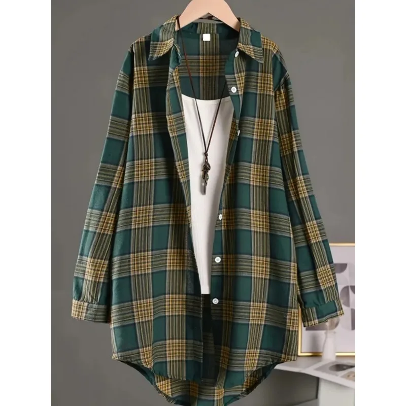 The Curvy Women's Loose Fit Long Cotton and Linen Plaid Shirt is reliable and practical.