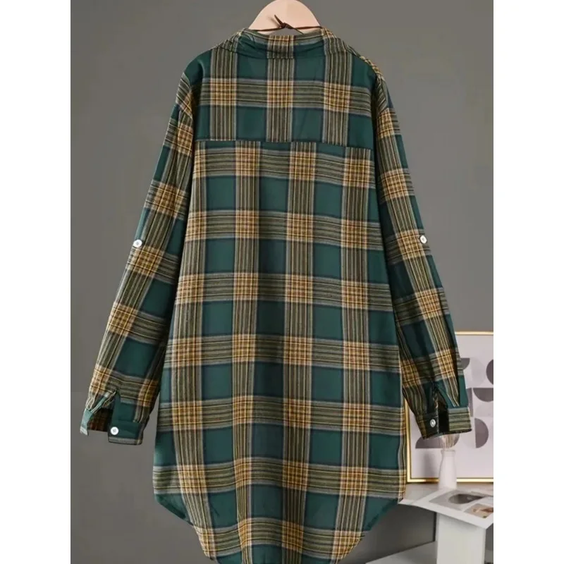 Love this Curvy Women's Loose Fit Long Cotton and Linen Plaid Shirt!