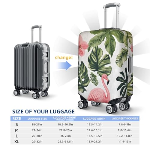 Flamingos And Leaves Elastic Travel Luggage Cover, Washable Spandex Suitcase Protector, Anti-Scratch Fits 18-32 Inch