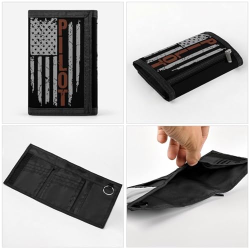 Pilot U.S. Flag Small Trifold Wallet for Men Canvas ID Credit Card Holder with Coin Pocket Outdoor 1