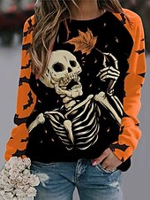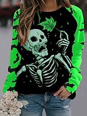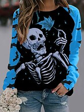 More information about Halloween Women's Pullover Sweatshirt Skulls Graphic Fashion Casual Long Sleeve Crew Neck Regular Tops Street Dailywear Casual Print Blue Purple Orange Green Fall Winter