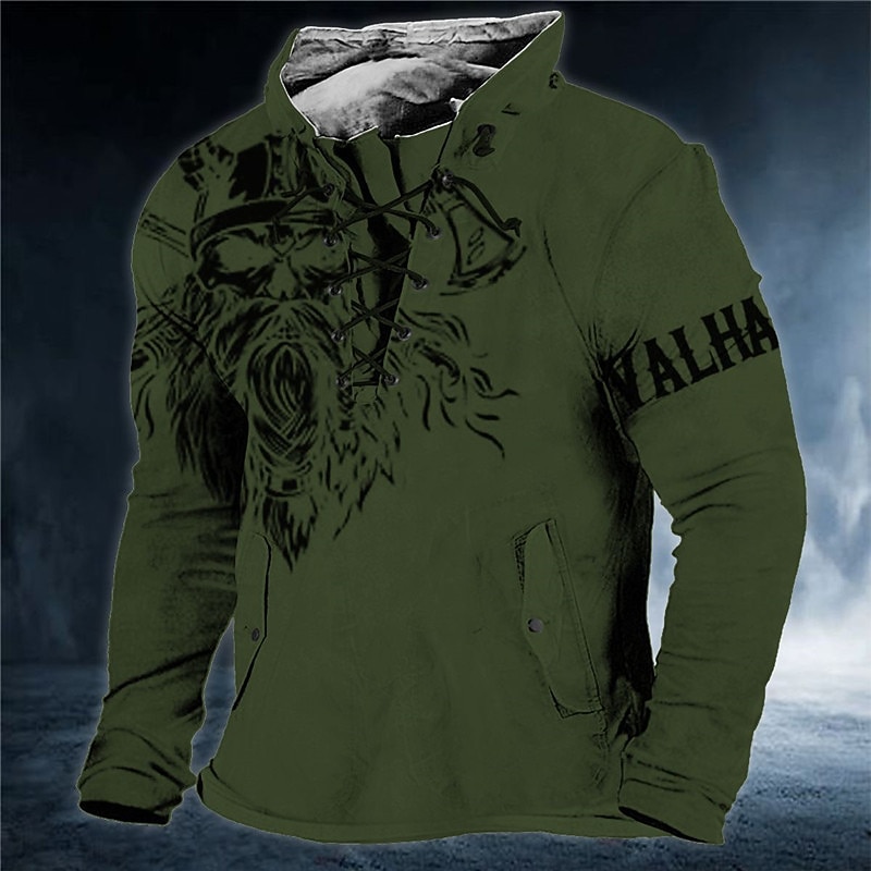 More information about Men's Cartoon Viking Warrior Graphic Prints Sweatshirt Pullover Long Sleeve Sweatshirt Standing Collar Streetwear Designer Basic 3D Print Sports & Outdoor Casual Daily Lace up Spring & Fall
