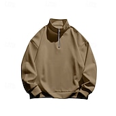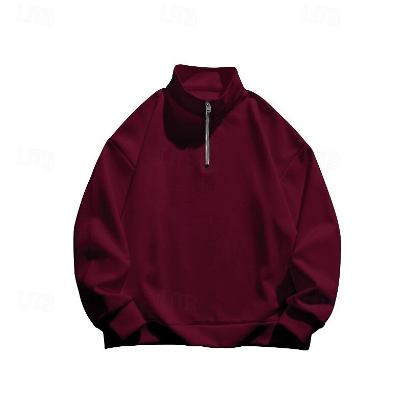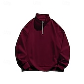 More information about Men's Zip Sweatshirt Fleece Hoodie Apricot Wine Red Black White Red Standing Collar Plain Zip Up Quarter Zip Sports & Outdoor Casual Daily Streetwear Cool Sportswear Fall & Winter Clothing Apparel