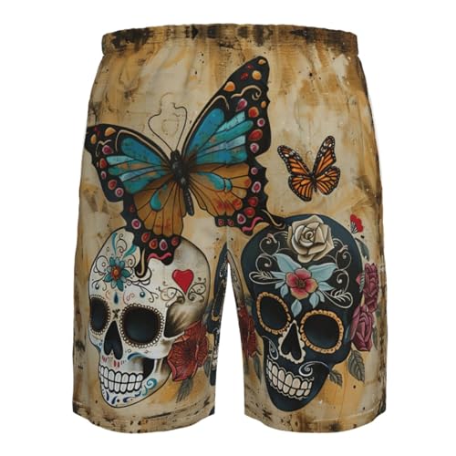 HOT ! Sugar Skulls Butterfly Print Stylish Beach Shorts Swim Trunks Lightweight Breathable Summer Outdoor Activities