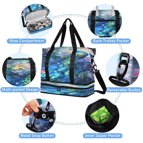 ALAZA Beautiful Peacock Colorful Travel Duffel Bag for Women Men Sports Gym Bag with Shoe Compartment Tote Weekender Overnight Bag with Wet Pocket for Travel, Gym,Yoga,Swimming 6