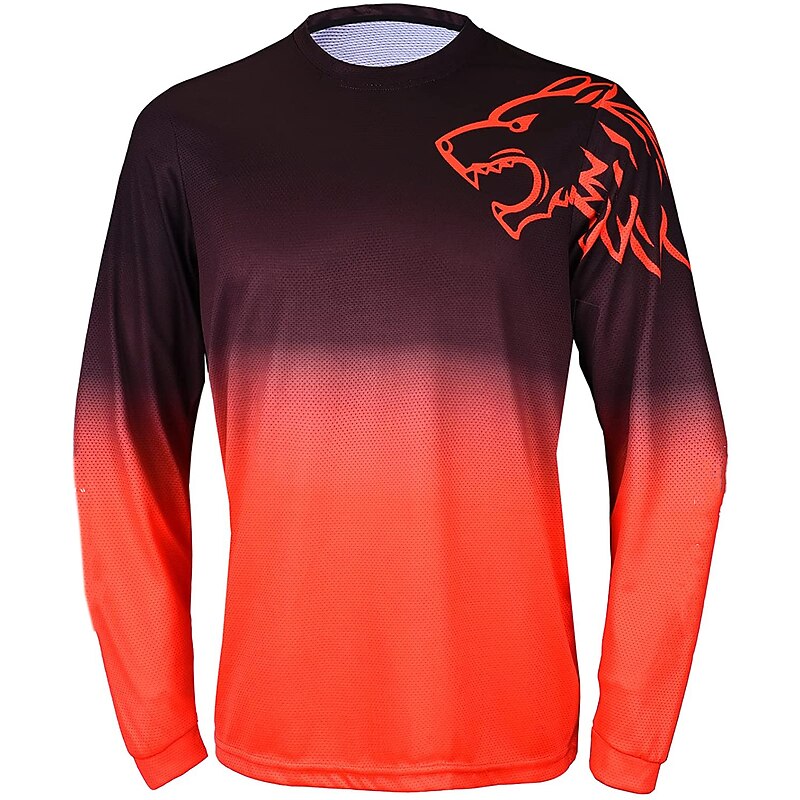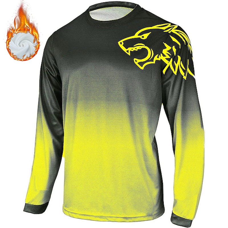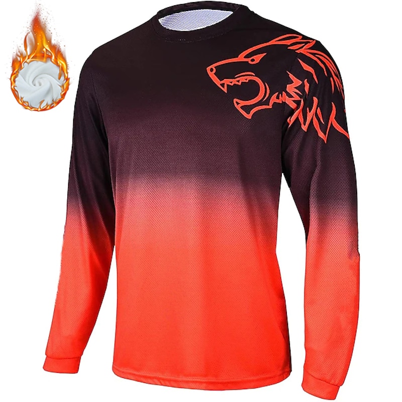 More information about Men's Downhill Jersey Long Sleeve Mountain Bike MTB Road Bike Cycling Wine Red Yellow Red Gradient Wolf Bike Jersey Fleece Lining Breathable Quick Dry Polyester Sports Gradient Wolf Clothing Apparel