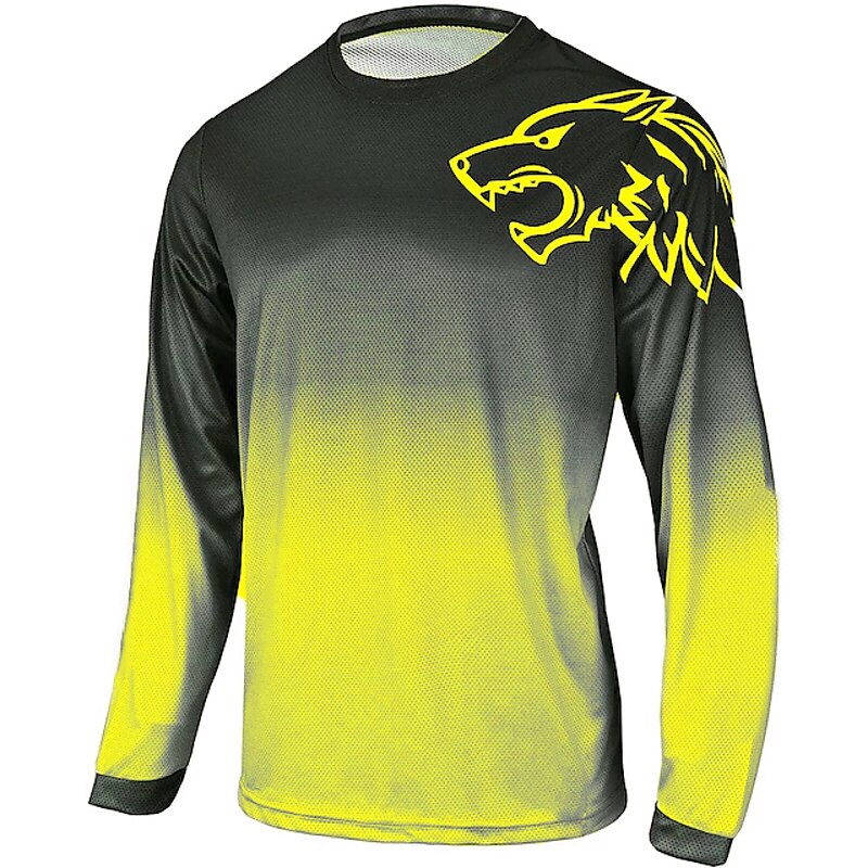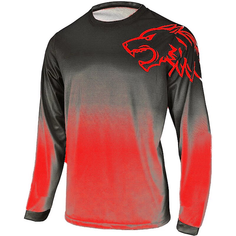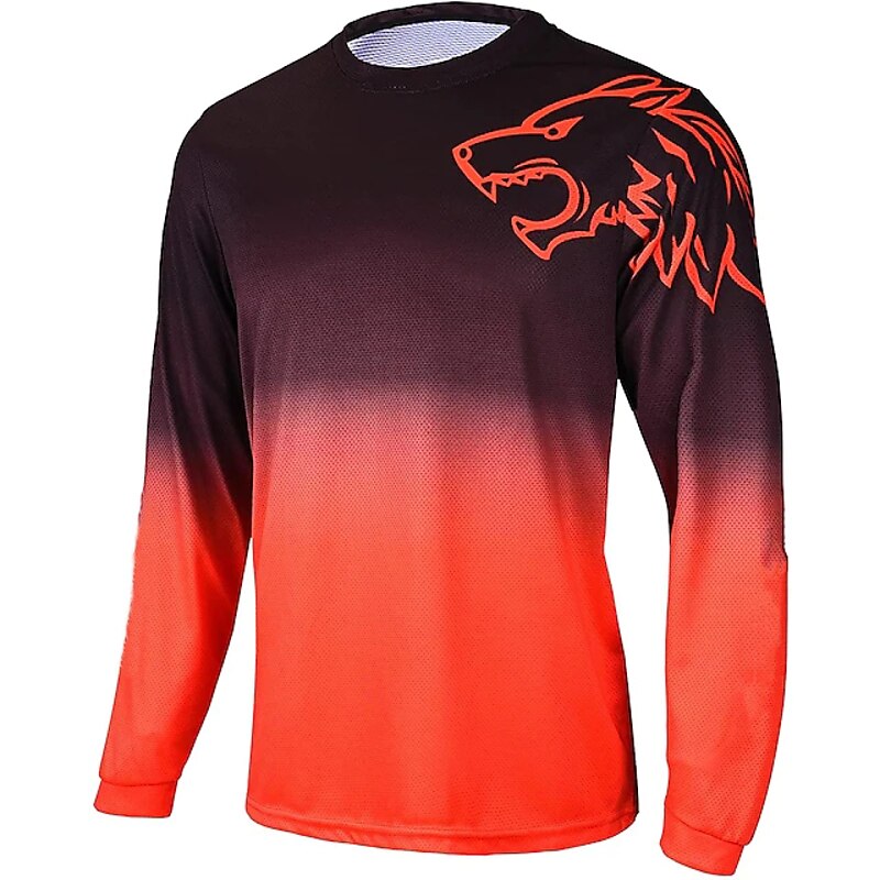 HOT ! Men's Downhill Jersey Long Sleeve Mountain Bike MTB Road Bike Cycling Wine Red Yellow Red Gradient Wolf Bike Jersey Fleece Lining Breathable Quick Dry Polyester Sports Gradient Wolf Clothing Apparel