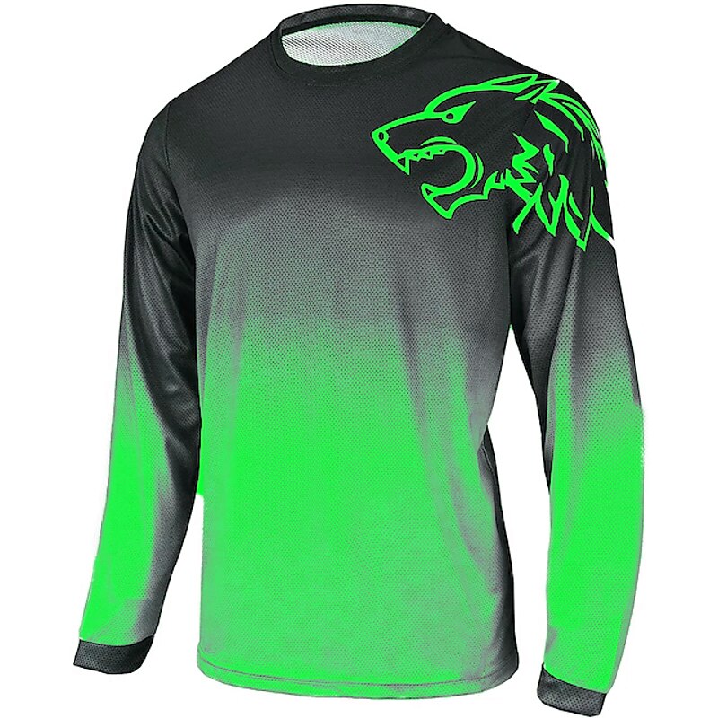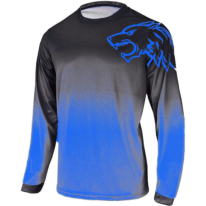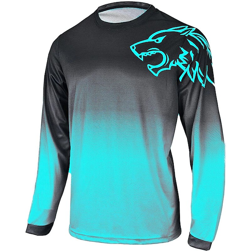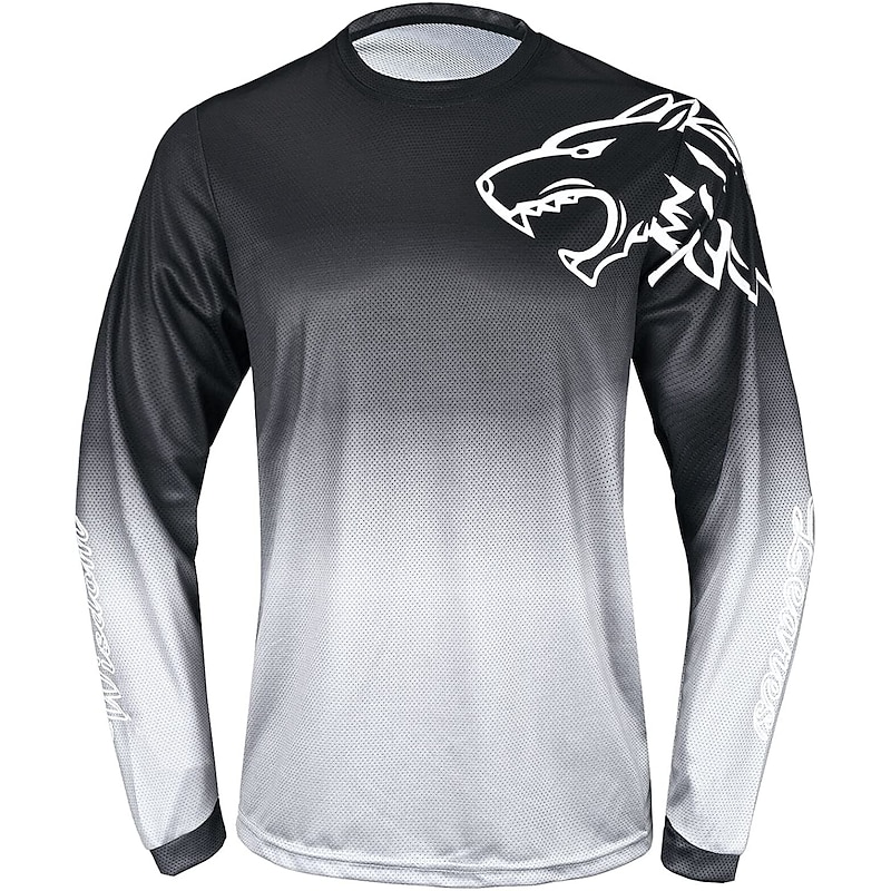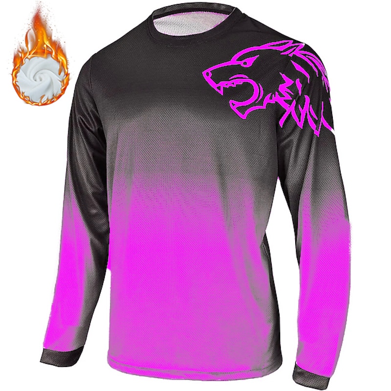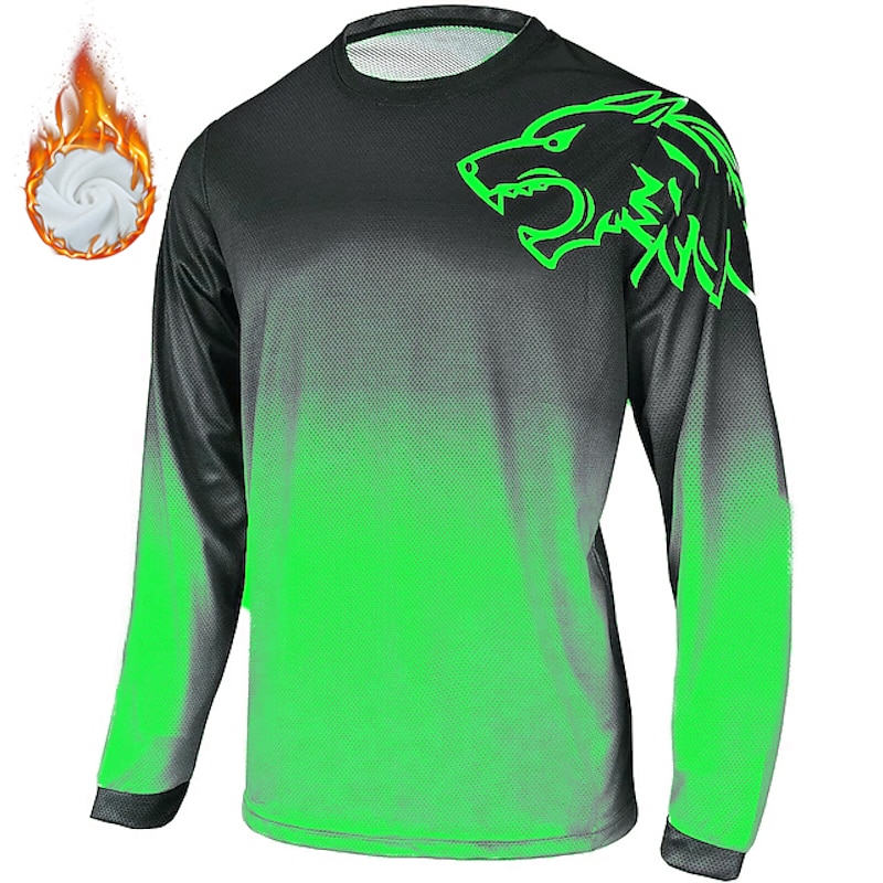 Highlights - Get the perfect fit with spandex material that offers unbeatable comfort and flexibility - Stay warm on chilly days with a cozy fleece lining - Keep moisture at bay with advanced moisture wicking technology - Perfect for all your athleisure needs - from mountain biking to road cycling - This stylish long-sleeved shirt is designed with a gradient wolf pattern that's sure to turn heads - Enjoy a quick dry experience that ensures you stay comfortable and dry all day long - Say goodbye to limits with stretchy material that lets you move freely and with ease.
