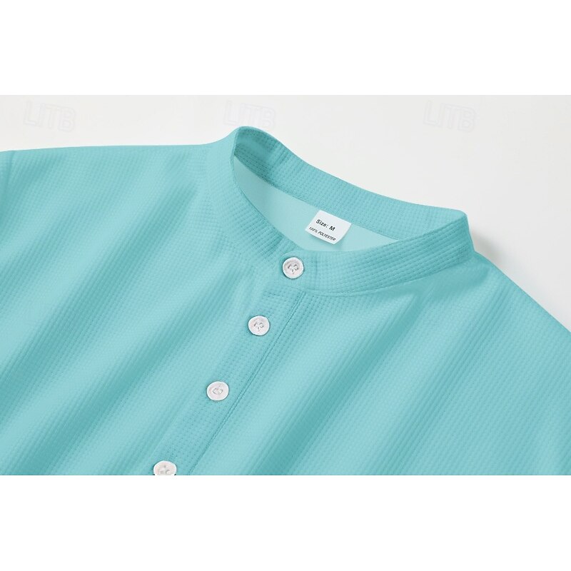More information about Men's Shirt Popover Shirt Summer Shirt Casual Shirt Beach Shirt Waffle Knit Shirt Black White Blue Sky Blue Army Green Long Sleeve Plain Stand Collar Vacation Hawaiian Buttons Clothing Apparel