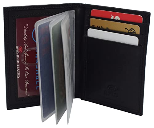 HOT ! RFID Blocking Slim Card Wallet Bifold Card Case Genuine Leather Front Pocket Wallet Minimalist Credit Card Holder (Black)