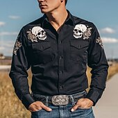 More information about Men's Skull Day of the Dead Flowers Shirt Western Shirt Cowboy Shirt Long Sleeve Vintage Retro Outdoor Holiday WorkWear Spring Fall Turndown Front Two Pockets Linen Like Shirt Button Up Shirts Black