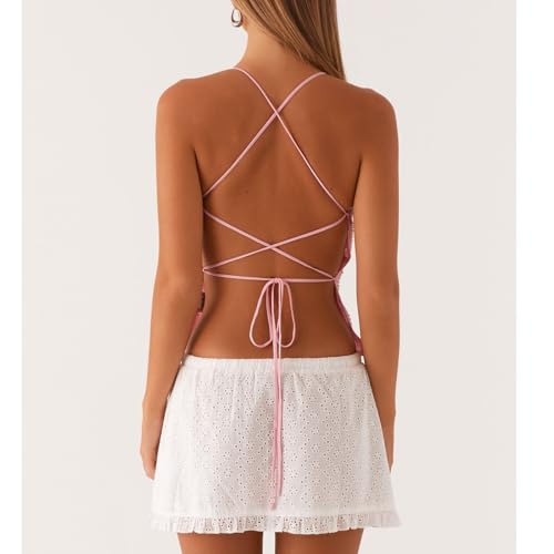More information about Women Y2K Sequin Cami Top Sexy V Neck Open Back Criss Cross Straps Tank Cute Sparkle Backless Low Cut Summer Crop Tops