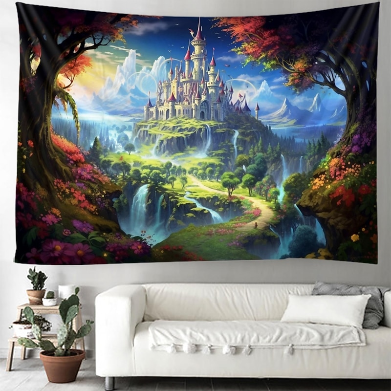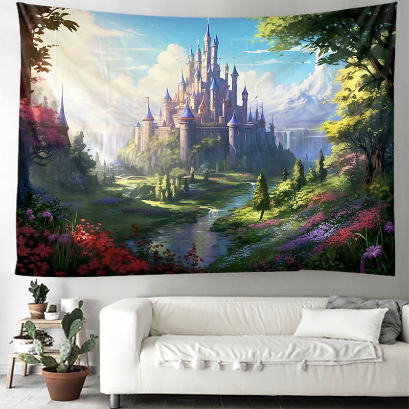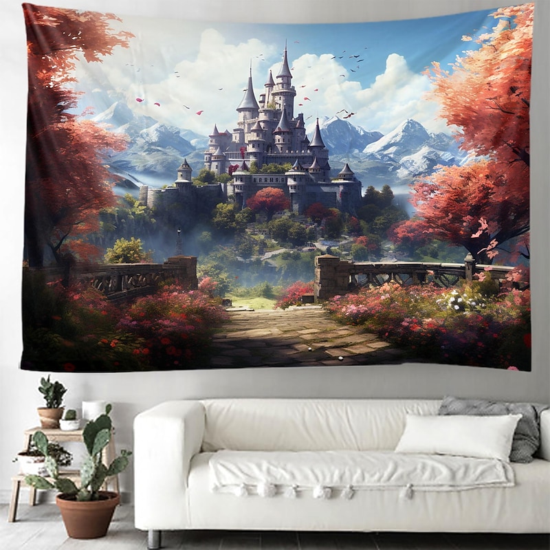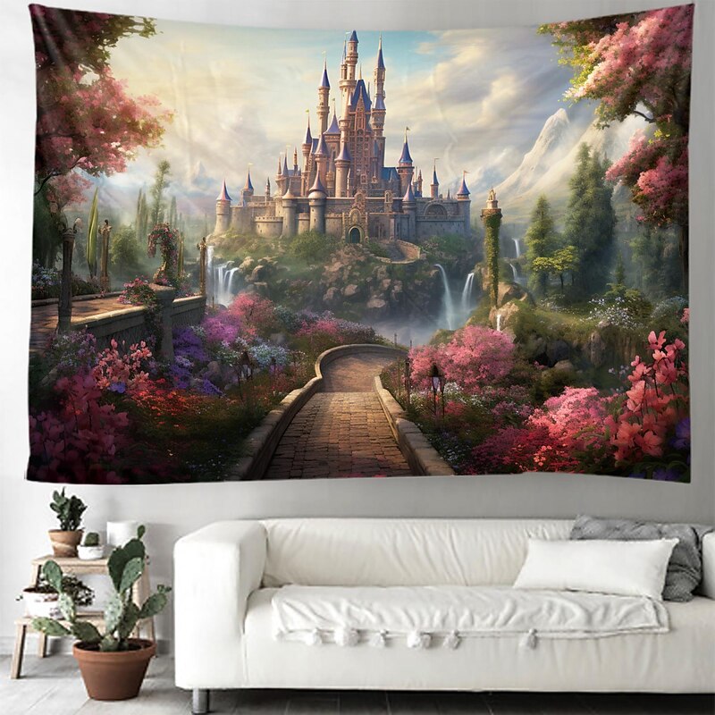 HOT ! Castle Garden Theme Hanging Tapestry Wall Art Large Tapestry Mural Decor Photograph Backdrop Blanket Curtain Home Bedroom Living Room Decoration