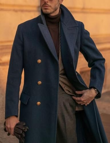 ONAXTDA Mens Wool Blend Trench Coat Slim Fit Double Breasted Long Pea Coat Notch Lapel Winter comfortable Overcoat