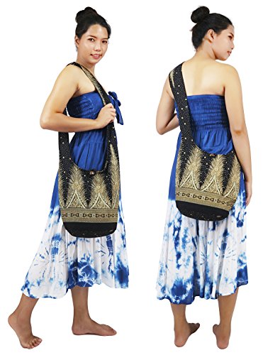 • 100% Cotton Hippie Sling Crossbody Bag Purse, a versatile and stylish hobo carryall made of durable but lightweight cotton fabric.