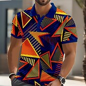 More information about Men's Geometric Color Block Polo Short Sleeve Polo Shirts Collared Shirts Casual Street Athleisure Daily Wear Buttons Summer Blue