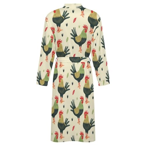 Green Rooster Soft Robe Long Sleeve Bathrobes V Neck Sleepwear Spa Robes with Belt Men Woman 1