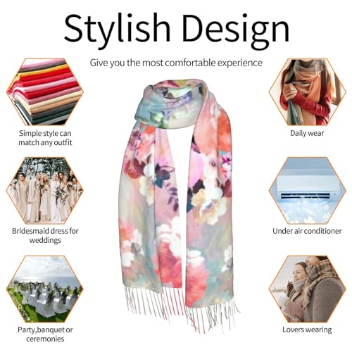 • PERFECT SIZE - Our scarf measures 77" L x27" W; include fringes, making it the perfect accessory for any occasion. The oversized scarf can be wore as a scarf, shawl, head wrap, hijab, stole, blanket for women.There are tassels decorated at the edge, making this scarf more cute and vivid while wearing.