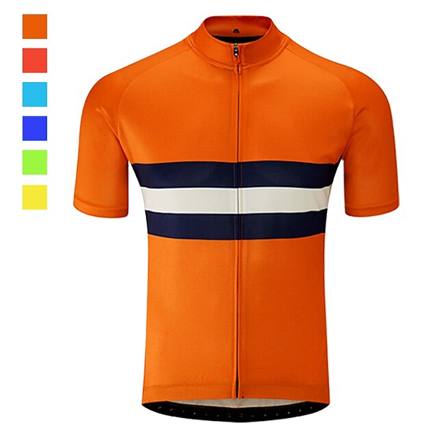 Men's Cycling Jersey Solid Color Stripes Patterned Short Sleeve Bike Jersey Top with 3 Rear Pockets Mountain Bike MTB Road Bike Cycling UV Resistant Quick Dry Reflective Strips Back Pocket Sports 10