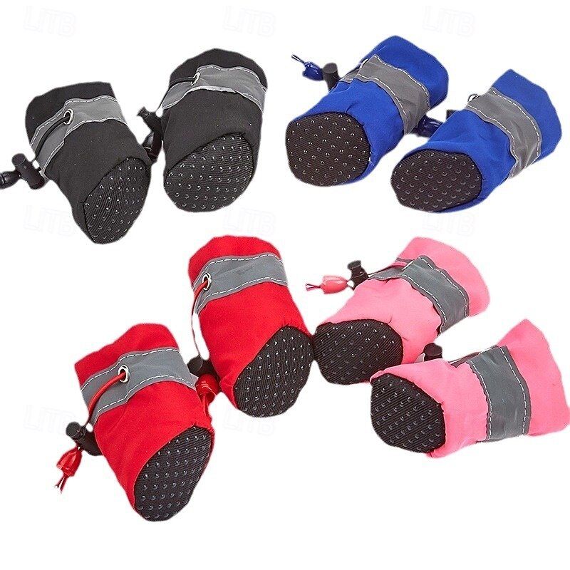 Dog Cat Pets Boots / Shoes Rain Boots Anti-Slip Waterproof Sneaker Solid Colored For Pets Waterproof Fabric Black 4
