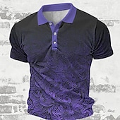 Men's Waffle Polo Shirts Golf Shirt Short Sleeve Polo Shirts Collared Shirts Casual Vacation Wear Party Outfits Buttons 3D Print Spring & Summer Purple Green 7