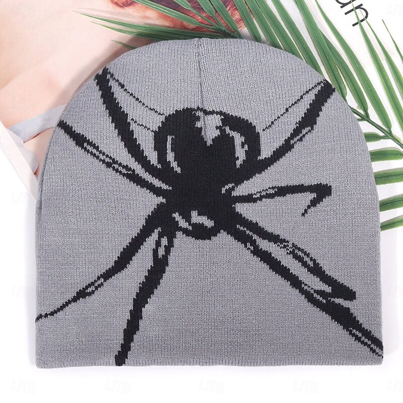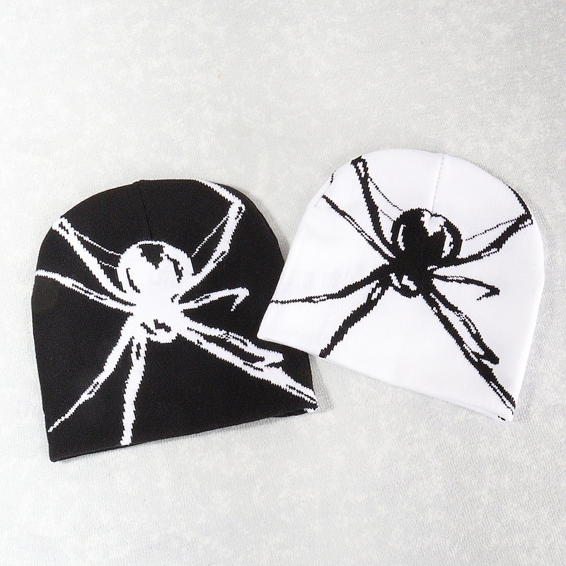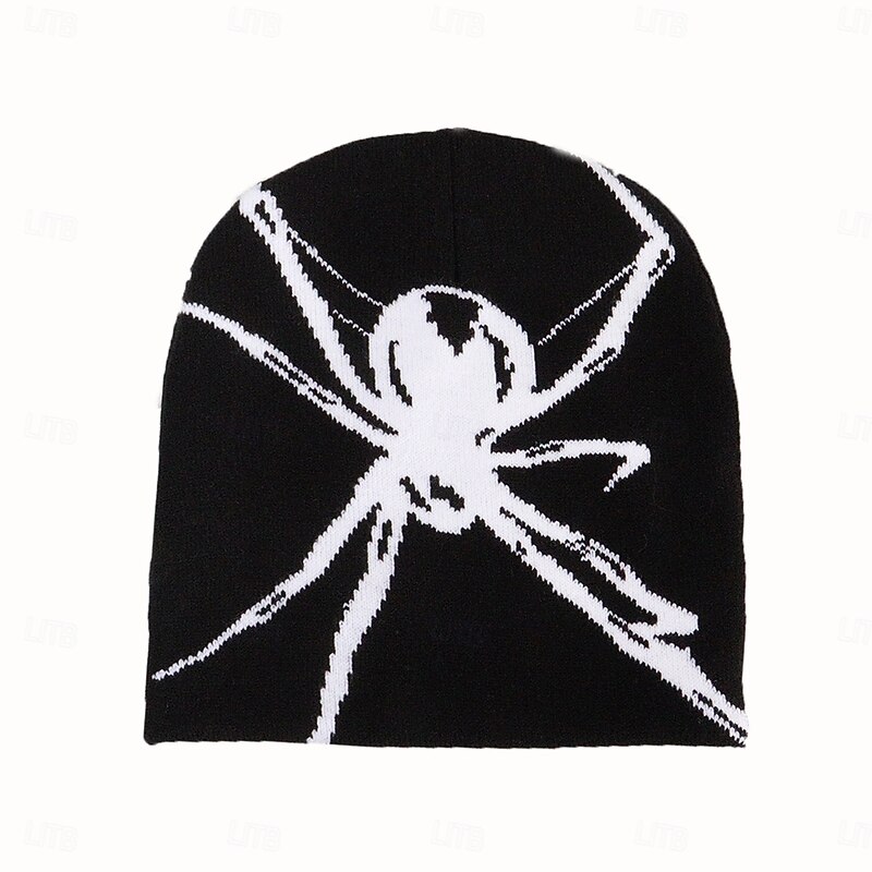 More information about Men's Unisex Beanie Hat Winter Hats Beanies Skull Cap Knit Hat Black White Acrylic Fibers Jacquard Knitted Cozy Halloween Daily Wear Festival Spider Warm