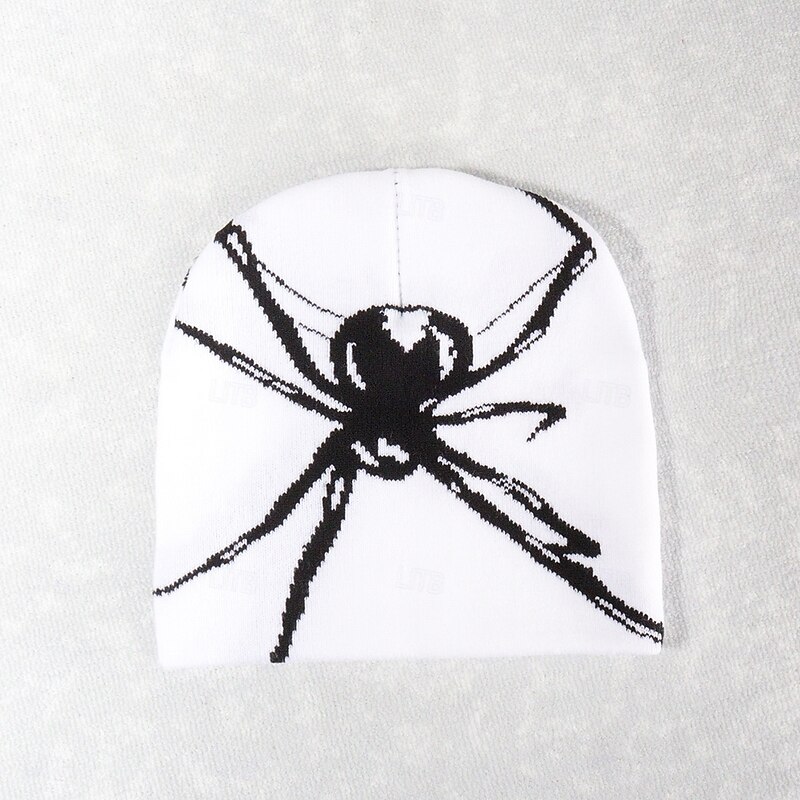 Men's Unisex Beanie Hat Winter Hats Beanies Skull Cap Knit Hat Black White Acrylic Fibers Jacquard Knitted Cozy Halloween Daily Wear Festival Spider Warm 6