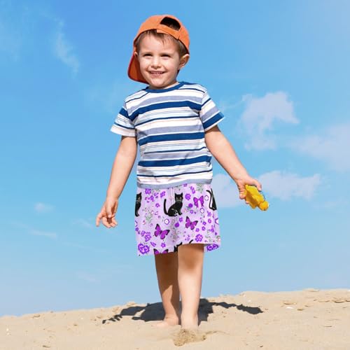 Boy Swim Trunks with Compression Liner Black Cats Pattern Boys Swim Shorts Quick Dry Beach Shorts 1