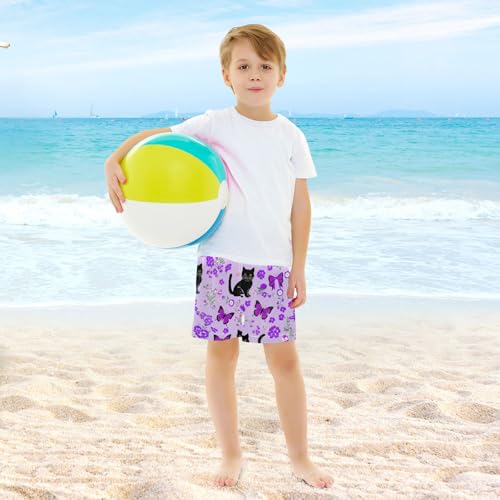 Boy Swim Trunks with Compression Liner Black Cats Pattern Boys Swim Shorts Quick Dry Beach Shorts 6