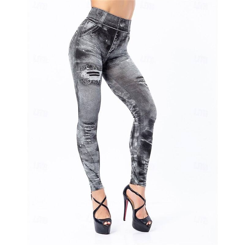 : Designed in a tailored fit, these high-waisted leggings offer both style and comfort. The faux denim look mimics classic jeans, while the stretchy material allows for ease of movement, making them suitable for various activities, from sports to streetwear.