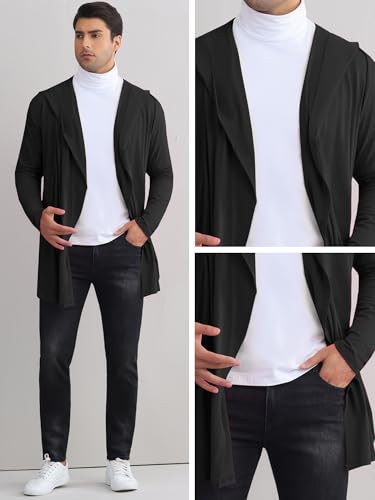 Lars Amadeus Hooded Cardigan for Men's Lightweight Shawl Collar Long Sleeves Open Front Draped Cardigans 4