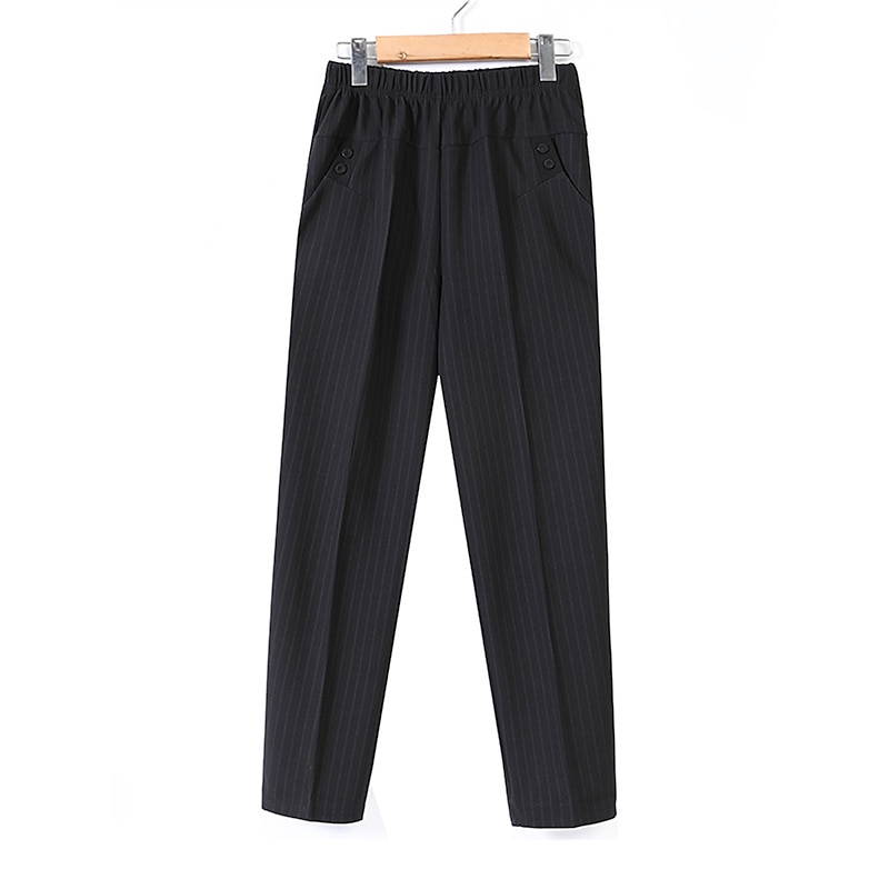 Highlights [Fabric:] Crafted from a high-quality cotton fabric, these pants offer a comfortable and breathable experience, making them perfect for the cooler months of fall and winter. The combination of fabric ensures micro-elasticity for better fit and ease of movement. [Fit:] Designed with a regular fit and high waist, these full-length trousers provide a flattering silhouette that accommodates various body types. The classic straight-leg cut is both timeless and versatile. [Design Highlights:] Featuring practical side pockets with button accents, these pants blend style and utility seamlessly. The elegant design includes an elastic waistband to enhance comfort and flexibility, making them suitable for prolonged wear throughout the day. The plaid and striped patterns add an element of sophistication, ideal for a polished look in any setting. [Occasions:] These fashion-forward pants are perfectly suited for office settings, streetwear, and daily casual wear. They can easily transition from a professional atmosphere to more relaxed environments, making them a versatile addition to your wardrobe. [Size Range:] Available in XL, 2XL, 3XL, 4XL, and 5XL, these trousers cater to a broad spectrum of sizes, ensuring a comfortable fit for a variety of body shapes.